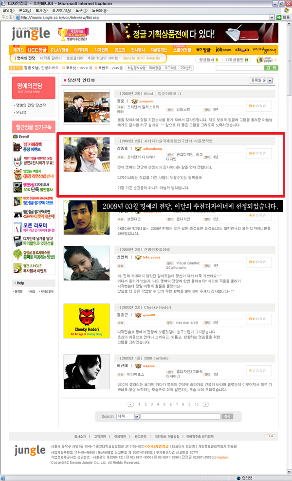 http://mania.jungle.co.kr/ucc/interview/list.asp